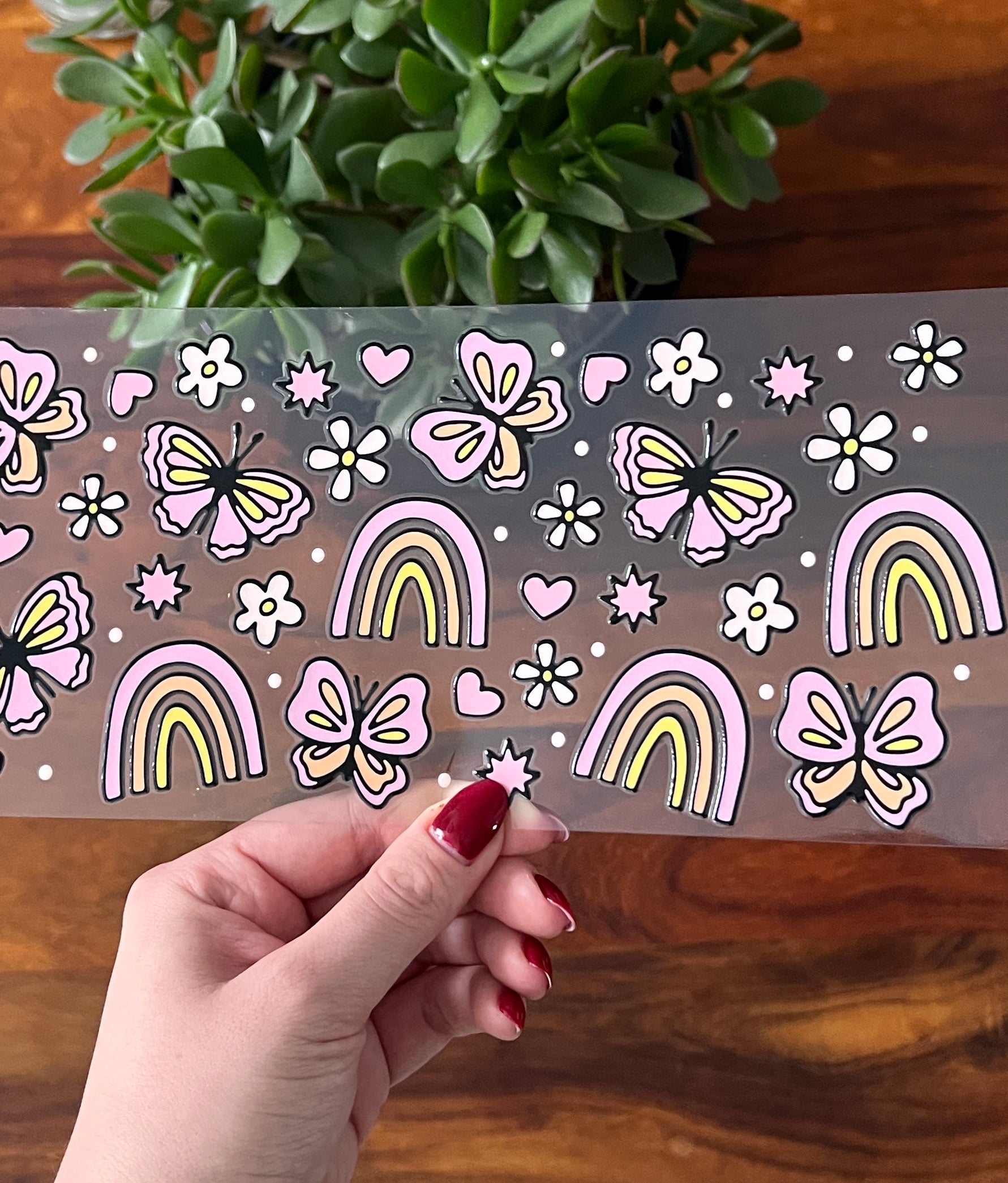 Verwandele dein Trinkglas mit diesen doppelseitigen UV DTF-Aufkleben in ein stimmungsvolles Accessoire.